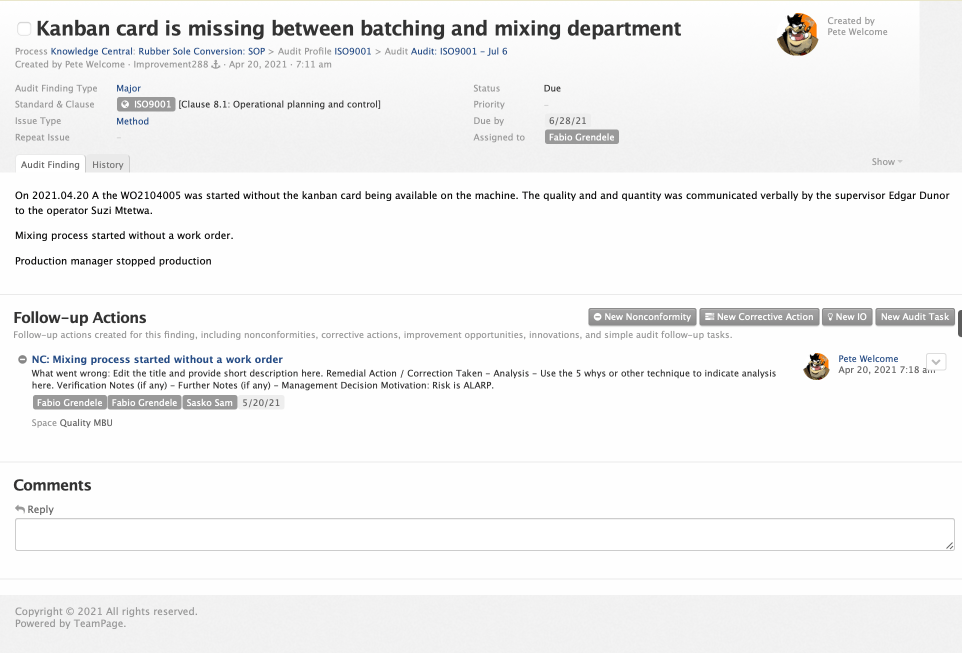 Naturally, with TeamPage at the center of your quality processes, all the right people are automatically kept in the loop.