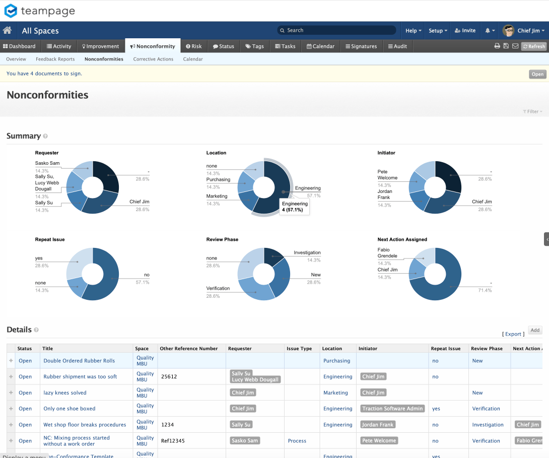 TeamPage has a variety of Dashboard views to give you up-to-the minute insight into quality processes throughout your organization.
