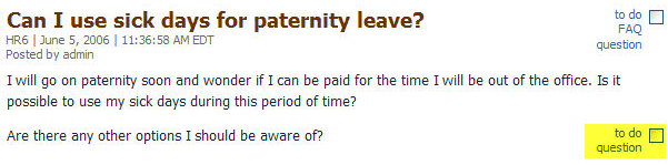 Here's an example showing how tags work. In this case, the FAQ tag in an Engineering space was clicked. You can see that there are three matches. The Add to This Topic button in the upper right makes it easy to add a new article tagged FAQ and it will show up in this area.