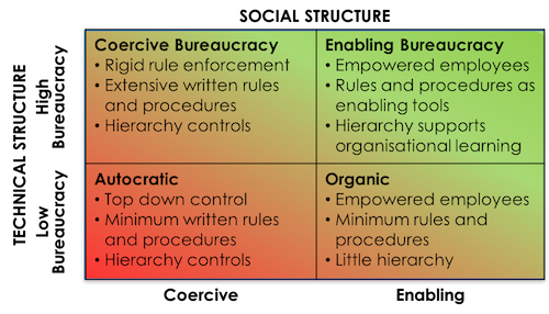 Social Structure and Technical Structure of an organisation as per Paul Adler (1999).