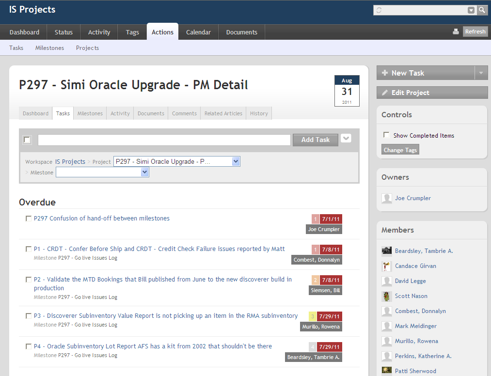 Pin-point focus on activities associated with a specific Task, Project or Milestone is extremely valuable when you need to stay on top of rapidly changing, time sensitive and critical activities such as the Oracle rollout. But it's equally important to be able to zoom out to maintain a healthy awareness of many other tasks, status updates (aka Enterprise Tweets), conversations, questions, and other activities that surround you at work.