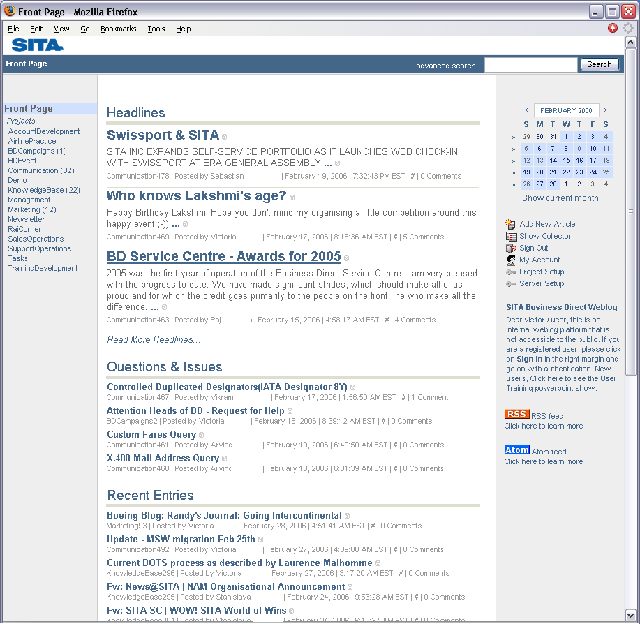 A SITA's story is published in EContent Magazine's September 2006 issue, titled A Case of Limitless Collaboration. Raj Vardahn, SITA's head of Sales and Business Development, says: